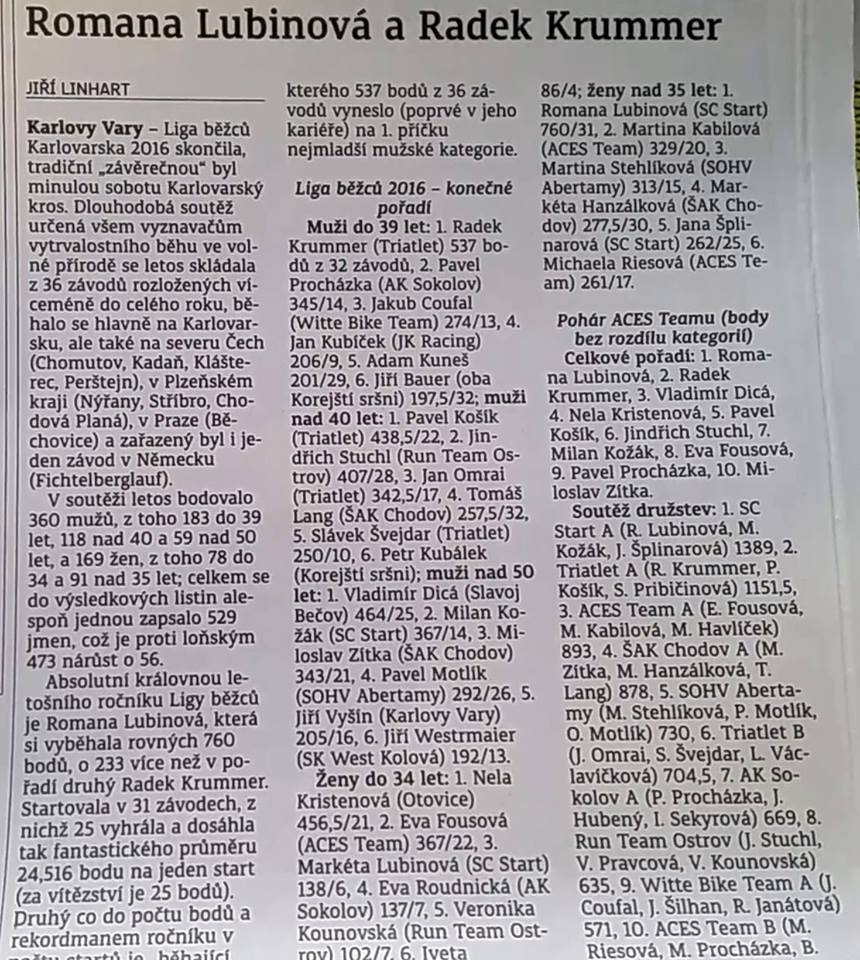 HOPR liga běžců 2016 v Karlovarském deníku